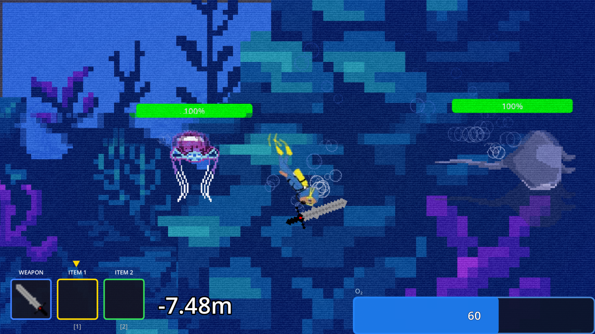 Dive into the depths and go as deep as you can. There will be stingrays and jellyfish that will try to sting you. When you run out of oxygen, you lose. There will be chests that help you throughout the way. Dread dwells deep down.